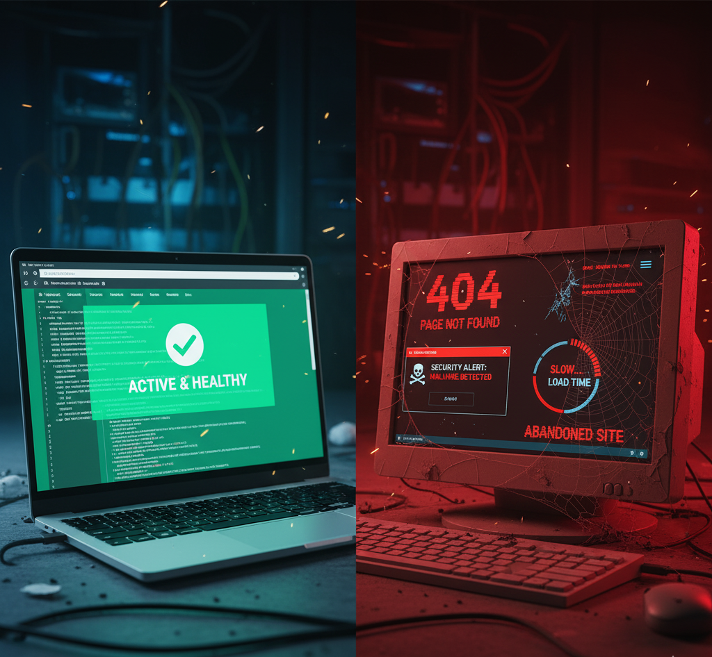 Google prioritizes fresh, healthy, and active websites. Neglect can cause ranking declines.